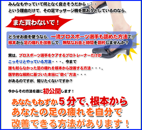 このノウハウは、今までの足の疲れ対処法とは全く違う方法で